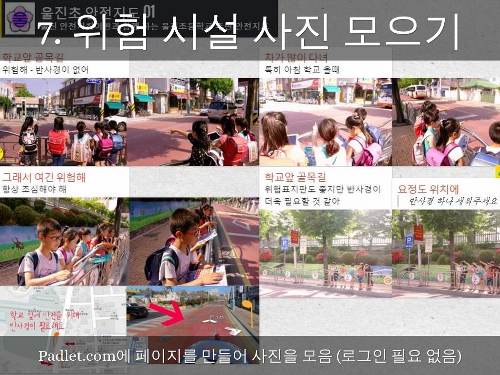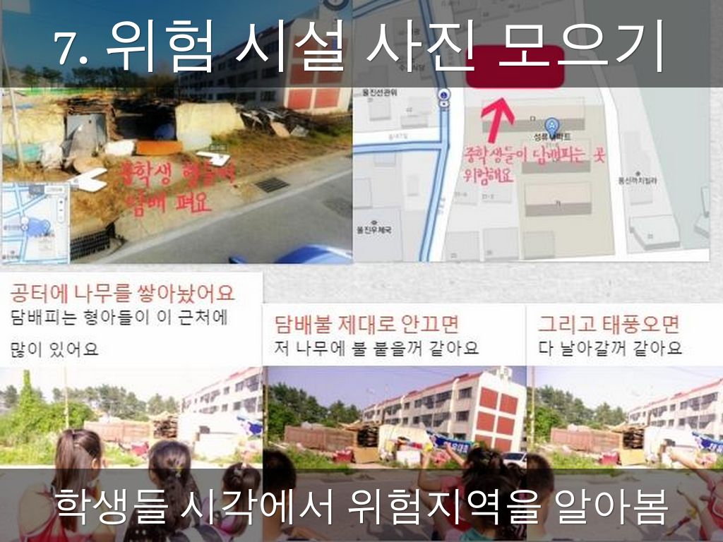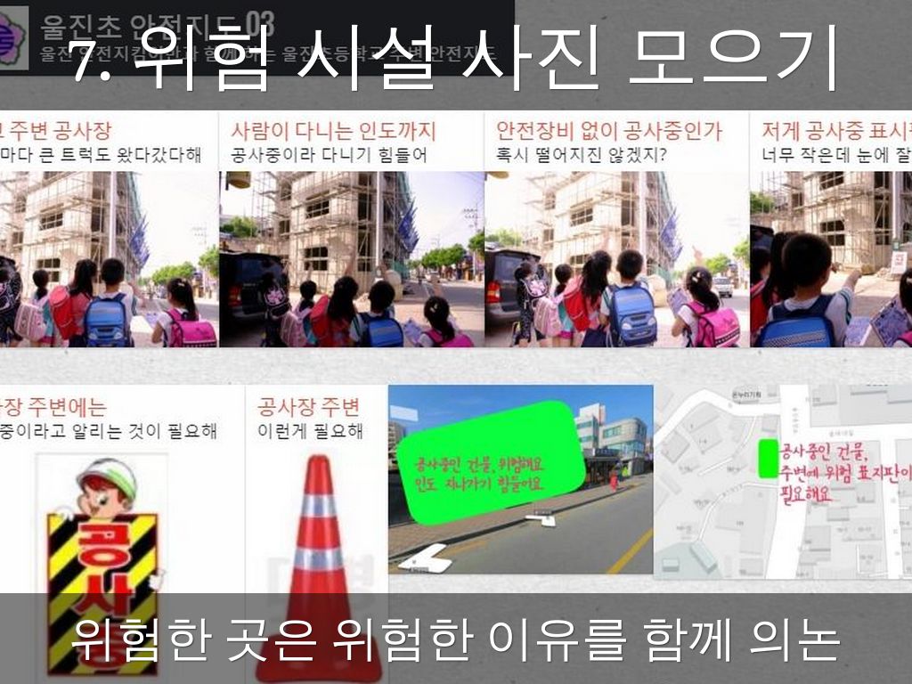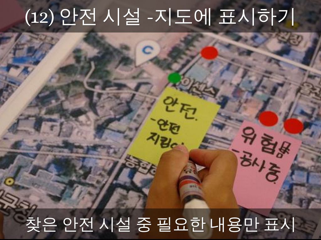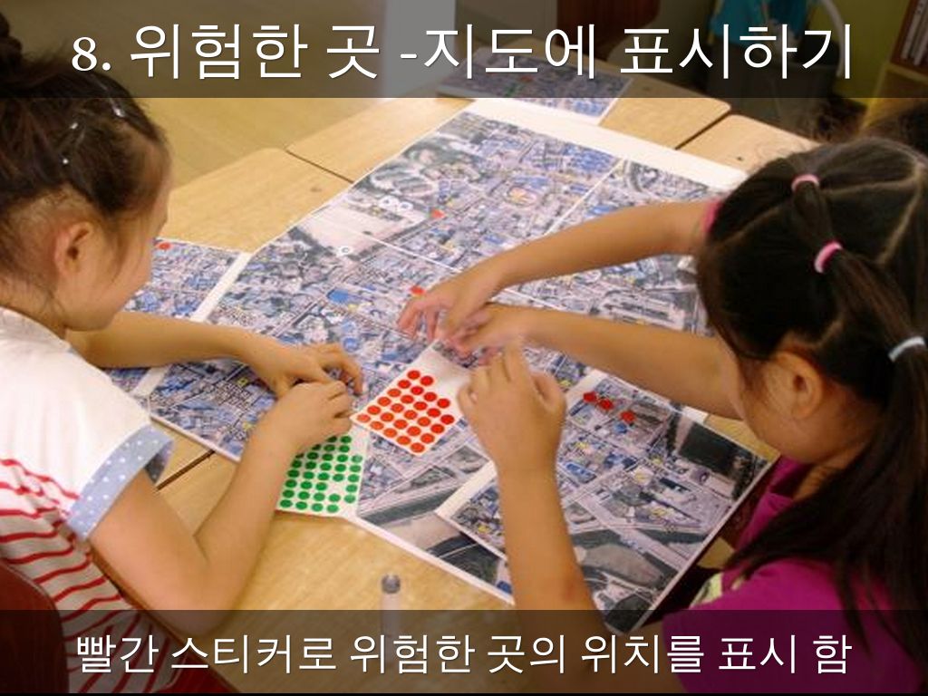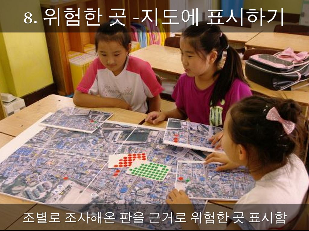 조별로 조사해온 판을 근거로 위험한 곳 표시함