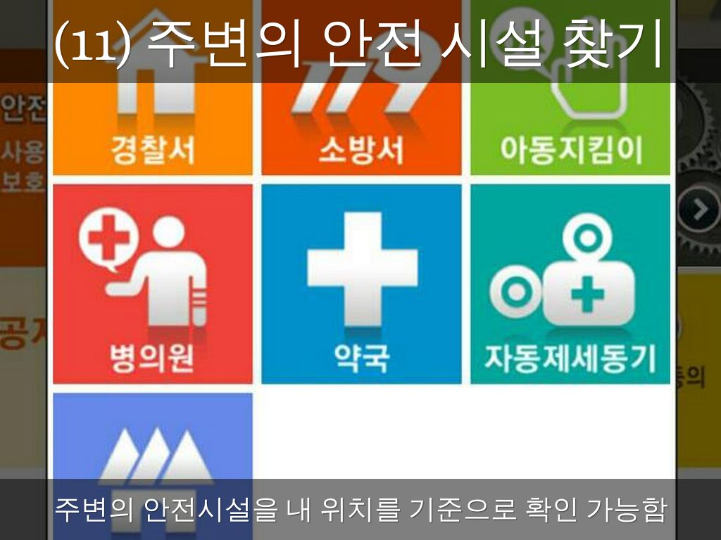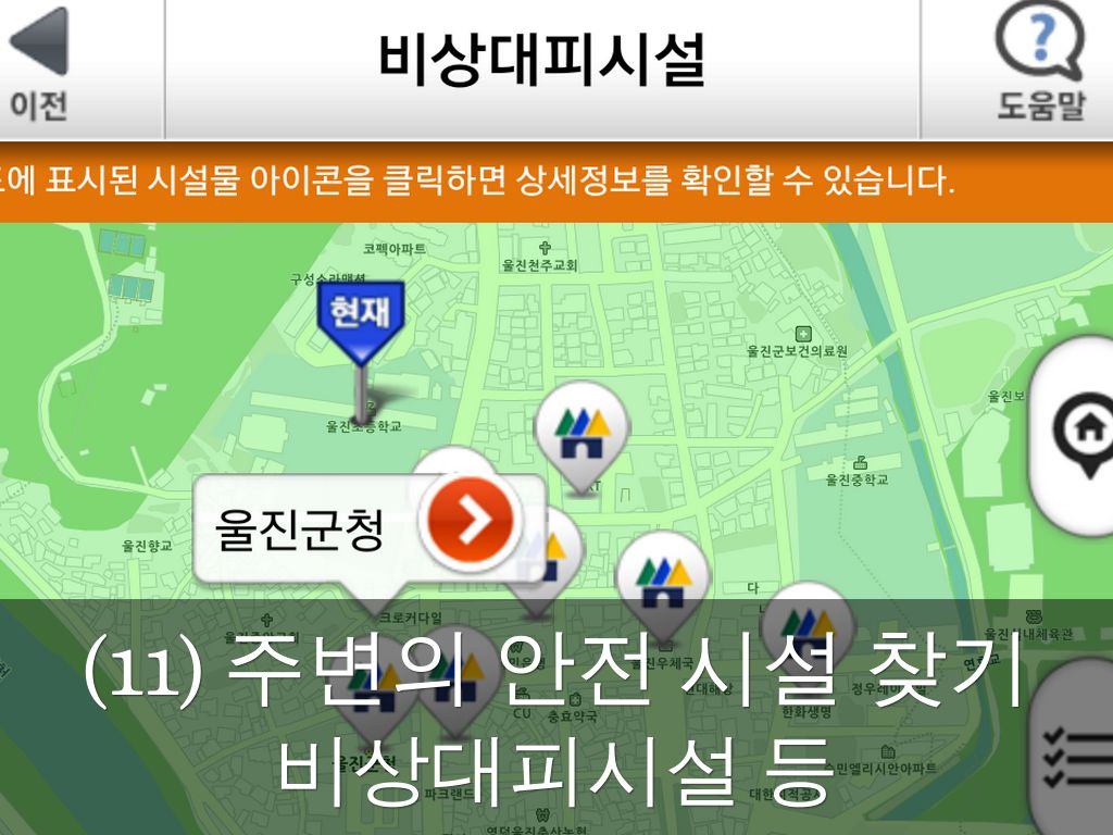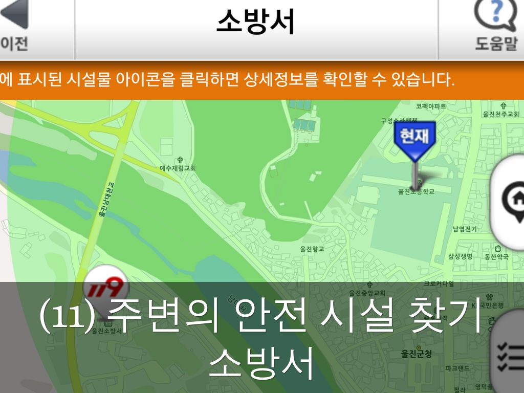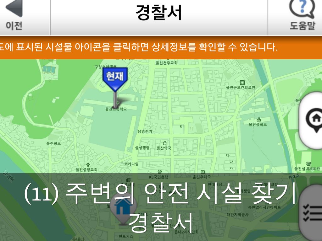 주변의 안전시설을 내 위치를 기준으로 확인 가능함