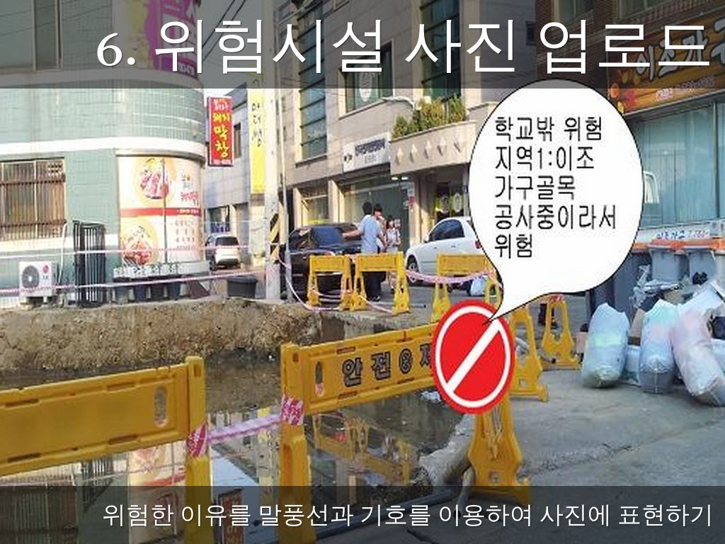 위험한 이유를 말풍선과 기호를 이용하여 사진에 표현하기
