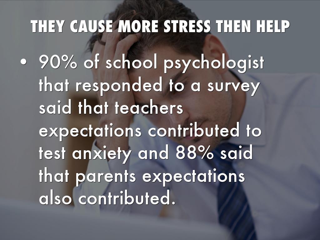 • 90% of school psychologist that responded to a survey said that teachers expectations contributed to test anxiety and 88% said that parents expectations also contributed.