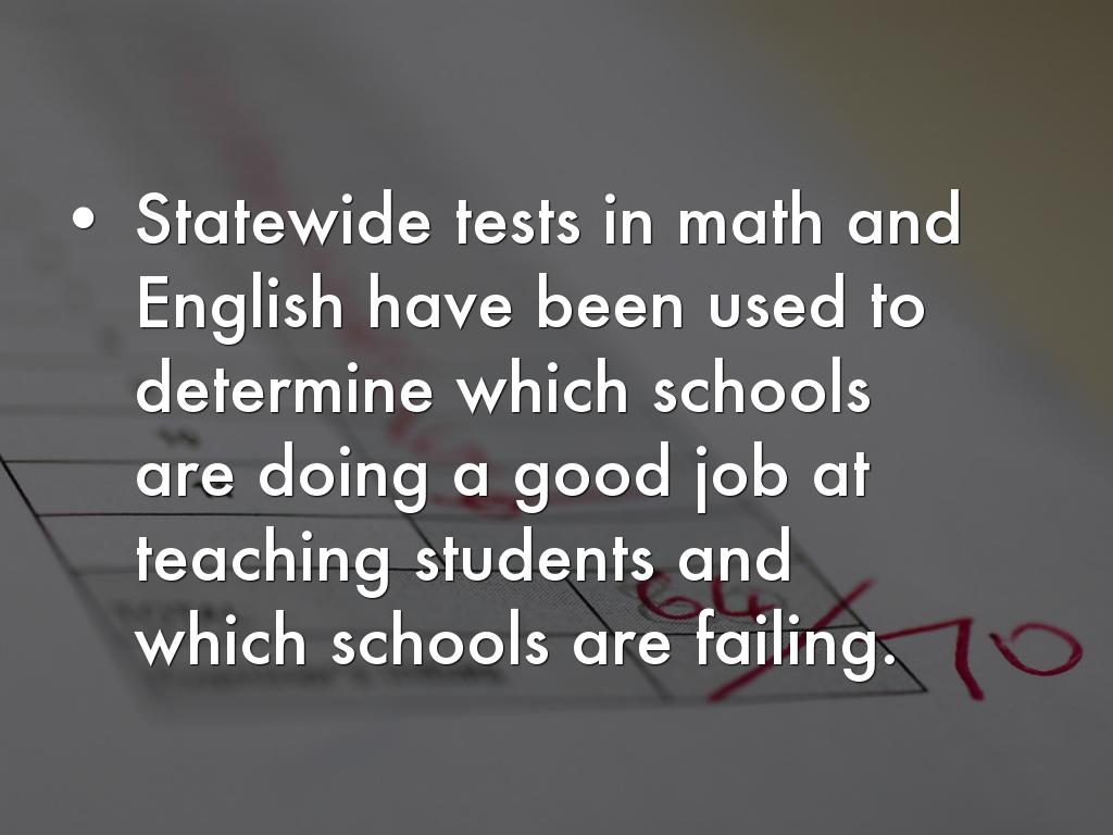 • Statewide tests in math and English have been used to determine which schools are doing a good job at teaching students and which schools are failing.