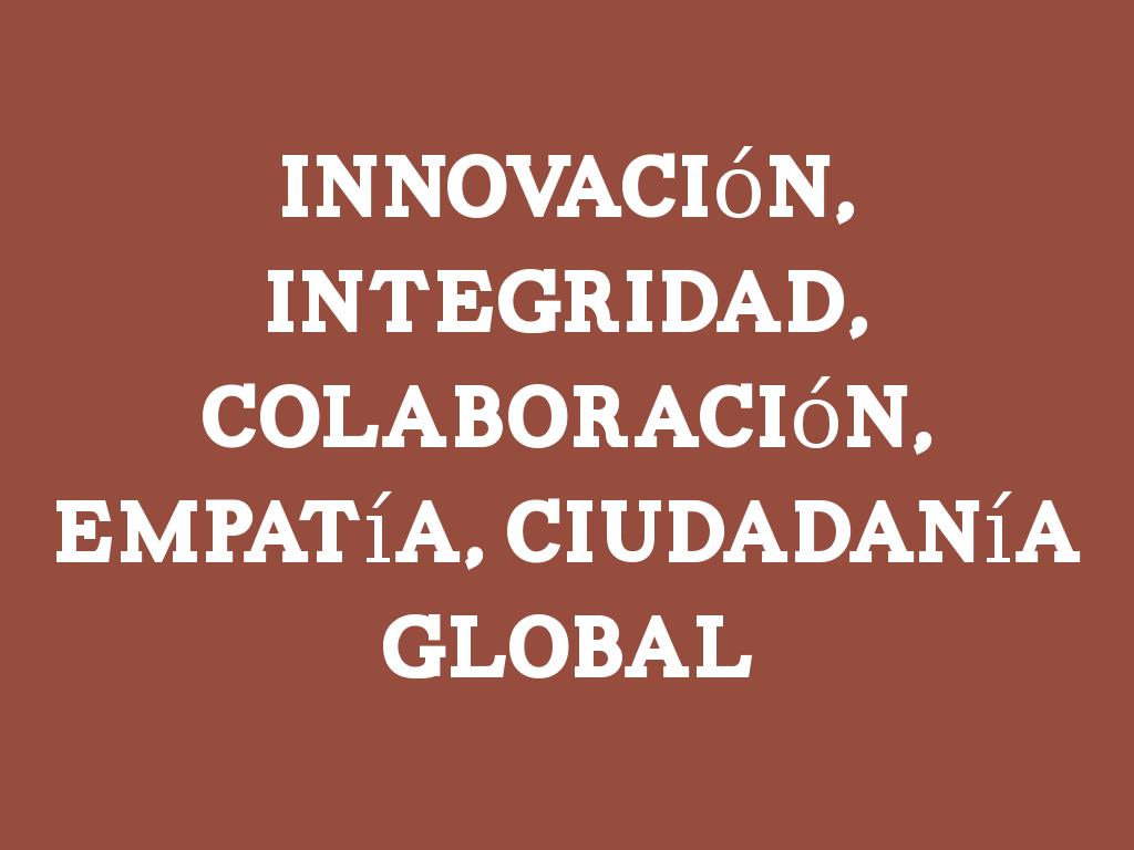 Innovación, Integridad, Colaboración, Empatía, Ciudadanía Global