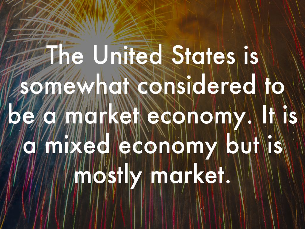 The United States is somewhat considered to be a market economy. It is a mixed economy but is mostly market.