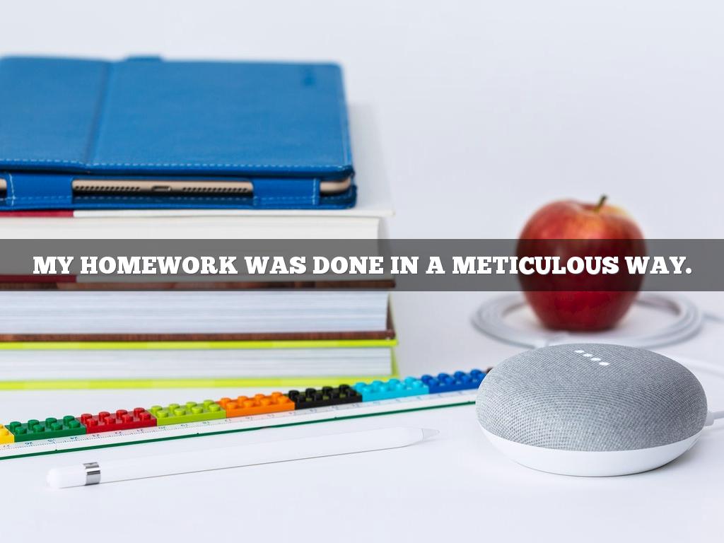 MY HOMEWORK WAS DONE IN A METICULOUS WAY.
