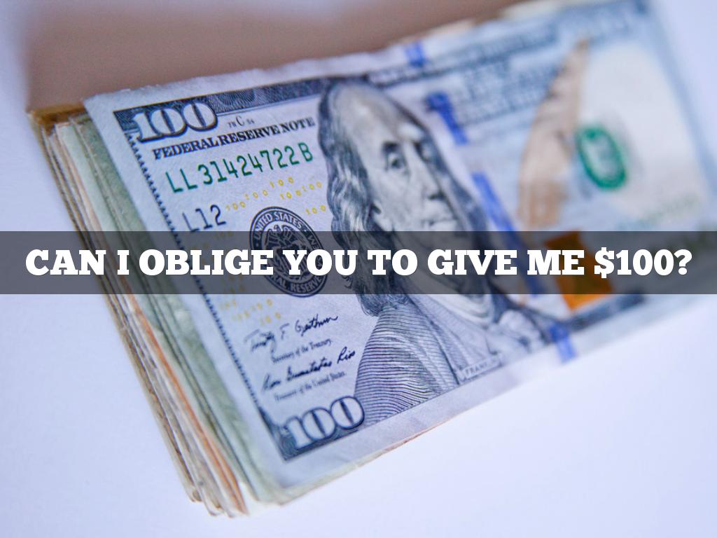 CAN I OBLIGE YOU TO GIVE ME $100?
