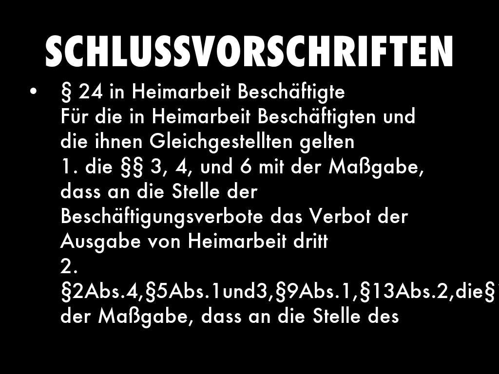 1. die §§ 3, 4, und 6 mit der Maßgabe, dass an die Stelle der Beschäftigungsverbote das Verbot der Ausgabe von Heimarbeit dritt