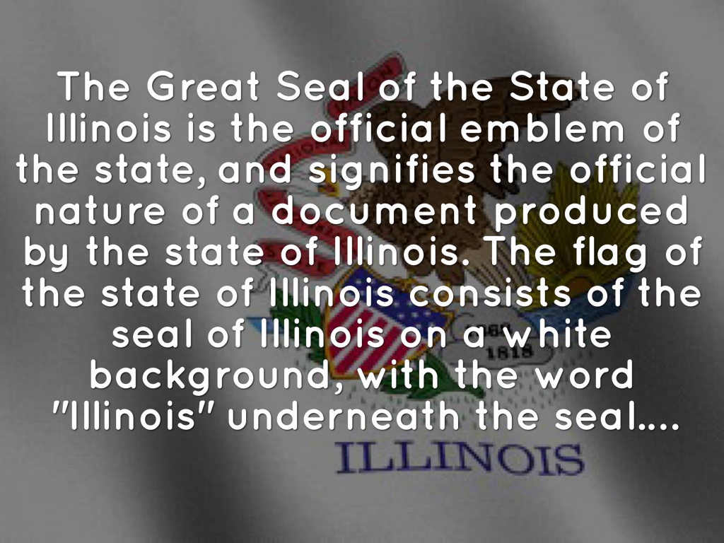 The Great Seal of the State of Illinois is the official emblem of the state, and signifies the official nature of a document produced by the state of Illinois. The flag of the state of Illinois consists of the seal of Illinois on a white background, with the word "Illinois" underneath the seal.