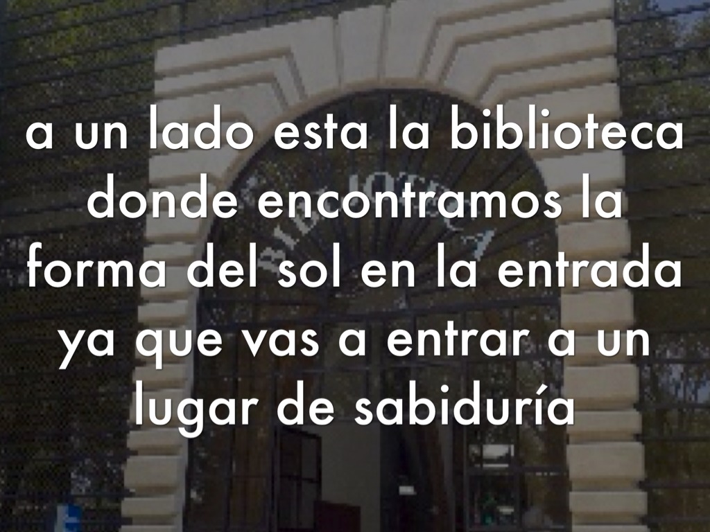 a un lado esta la biblioteca donde encontramos la forma del sol en la entrada ya que vas a entrar a un lugar de sabiduría