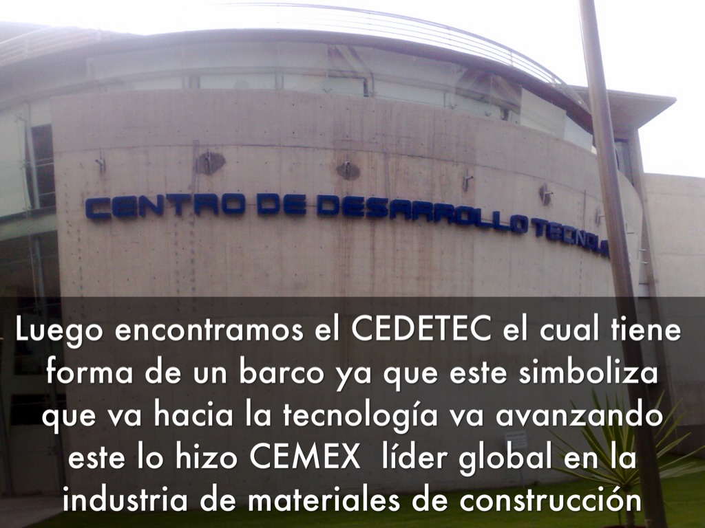 Luego encontramos el CEDETEC el cual tiene forma de un barco ya que este simboliza que va hacia la tecnología va avanzando este lo hizo CEMEX líder global en la industria de materiales de construcción