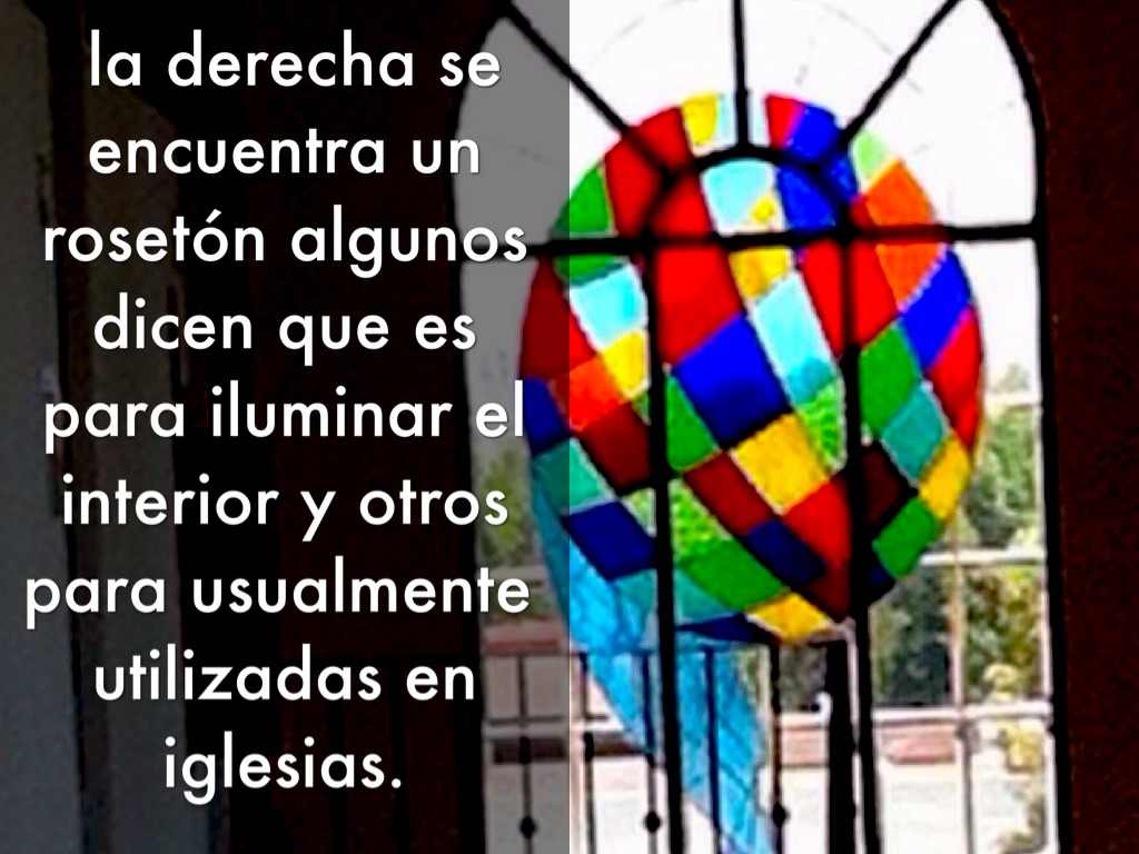 la derecha se encuentra un rosetón algunos dicen que es para iluminar el interior y otros para usualmente utilizadas en iglesias.