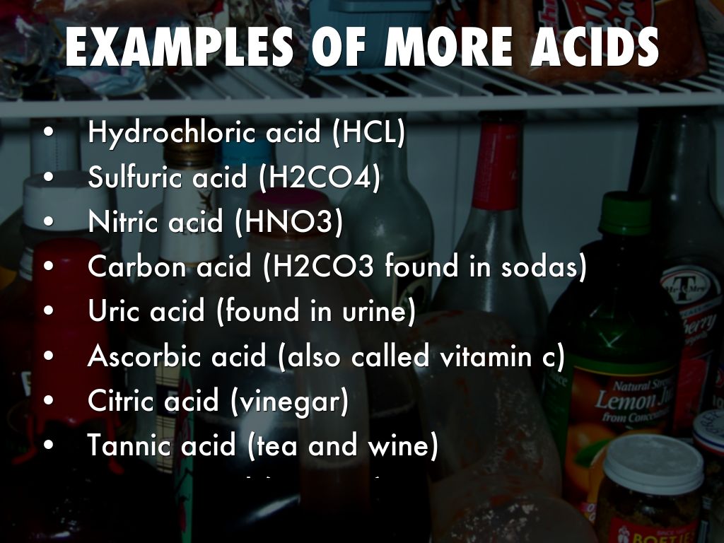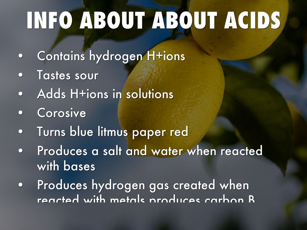 • Produces hydrogen gas created when reacted with metals produces carbon B when reacted with bicarbonate