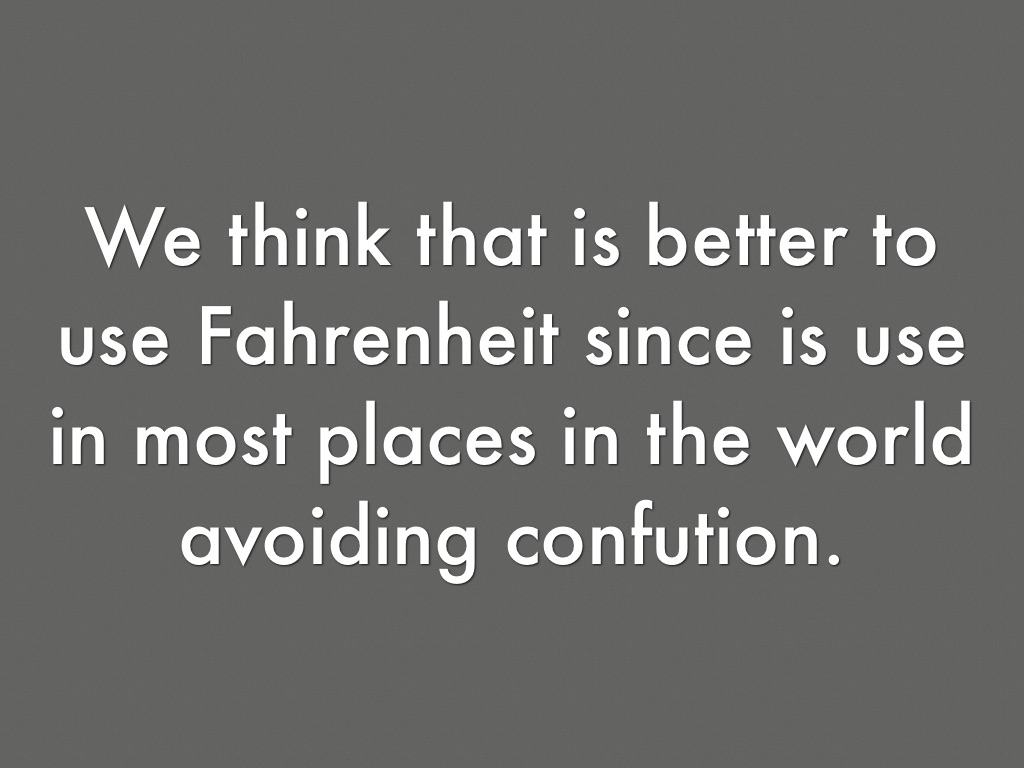 We think that is better to use Fahrenheit since is use in most places in the world avoiding confution.