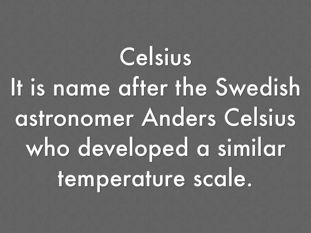It is name after the Swedish astronomer Anders Celsius who developed a similar temperature scale.