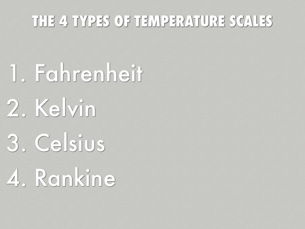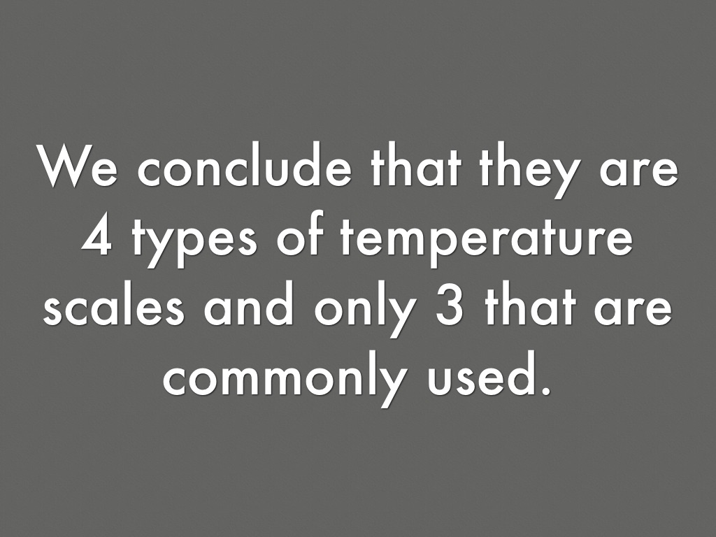 We conclude that they are 4 types of temperature scales and only 3 that are commonly used.
