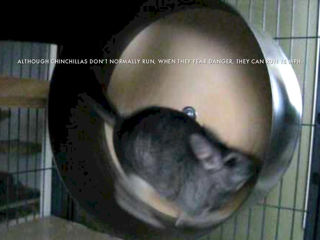 ALTHOUGH CHINCHILLAS DON’T NORMALLY RUN, WHEN THEY FEAR DANGER, THEY CAN RUN 15 MPH.