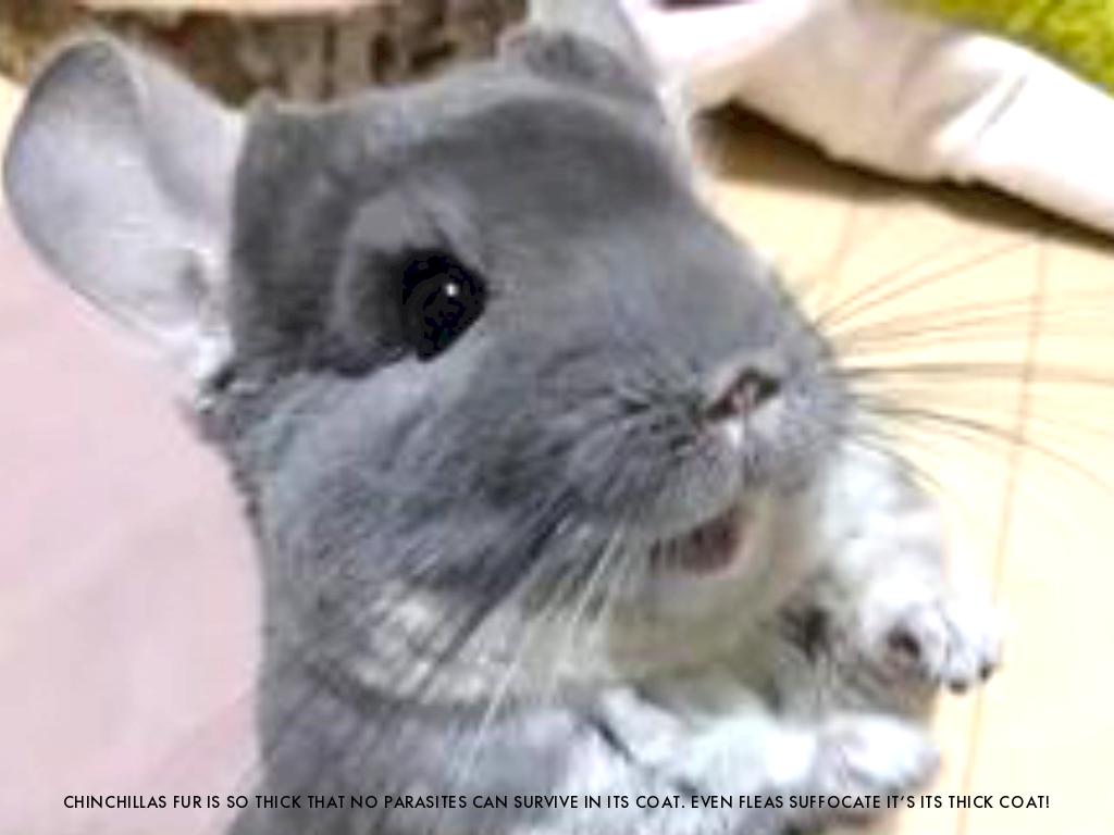 CHINCHILLAS FUR IS SO THICK THAT NO PARASITES CAN SURVIVE IN ITS COAT. EVEN FLEAS SUFFOCATE IT’S ITS THICK COAT!