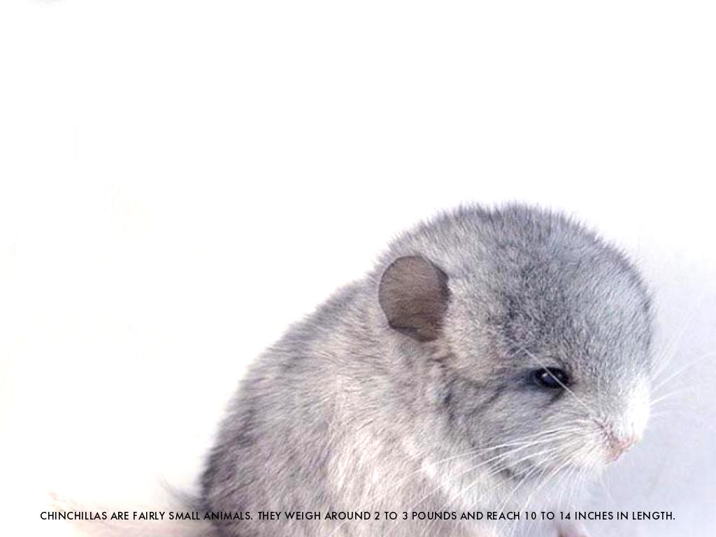 CHINCHILLAS ARE FAIRLY SMALL ANIMALS. THEY WEIGH AROUND 2 TO 3 POUNDS AND REACH 10 TO 14 INCHES IN LENGTH.