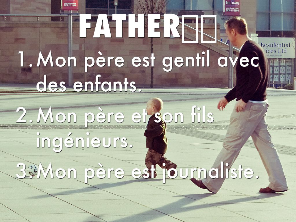 Mon père est gentil avec des enfants.