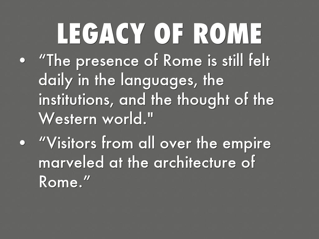 • “The presence of Rome is still felt daily in the languages, the institutions, and the thought of the Western world."