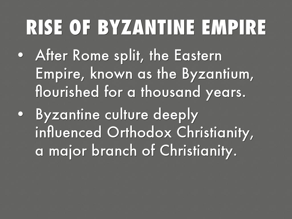 • After Rome split, the Eastern Empire, known as the Byzantium, flourished for a thousand years.