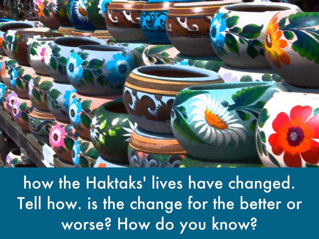 how the Haktaks' lives have changed. Tell how. is the change for the better or worse? How do you know?