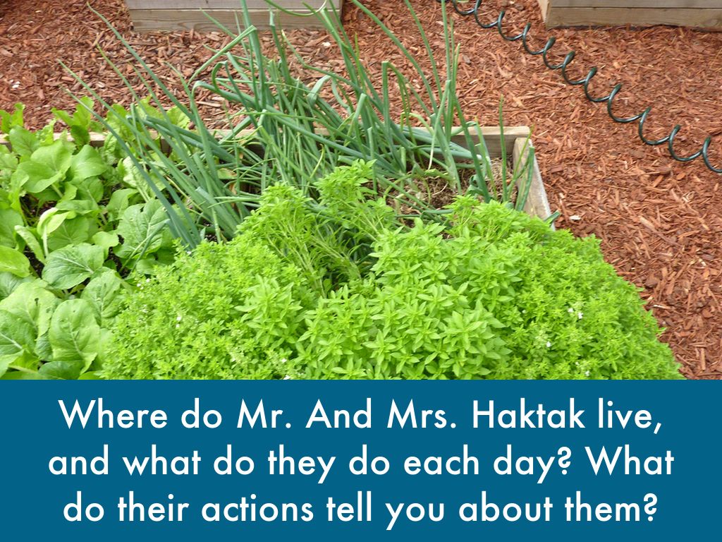 Where do Mr. And Mrs. Haktak live, and what do they do each day? What do their actions tell you about them?