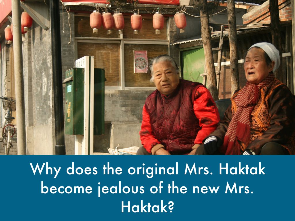 Why does the original Mrs. Haktak become jealous of the new Mrs. Haktak?
