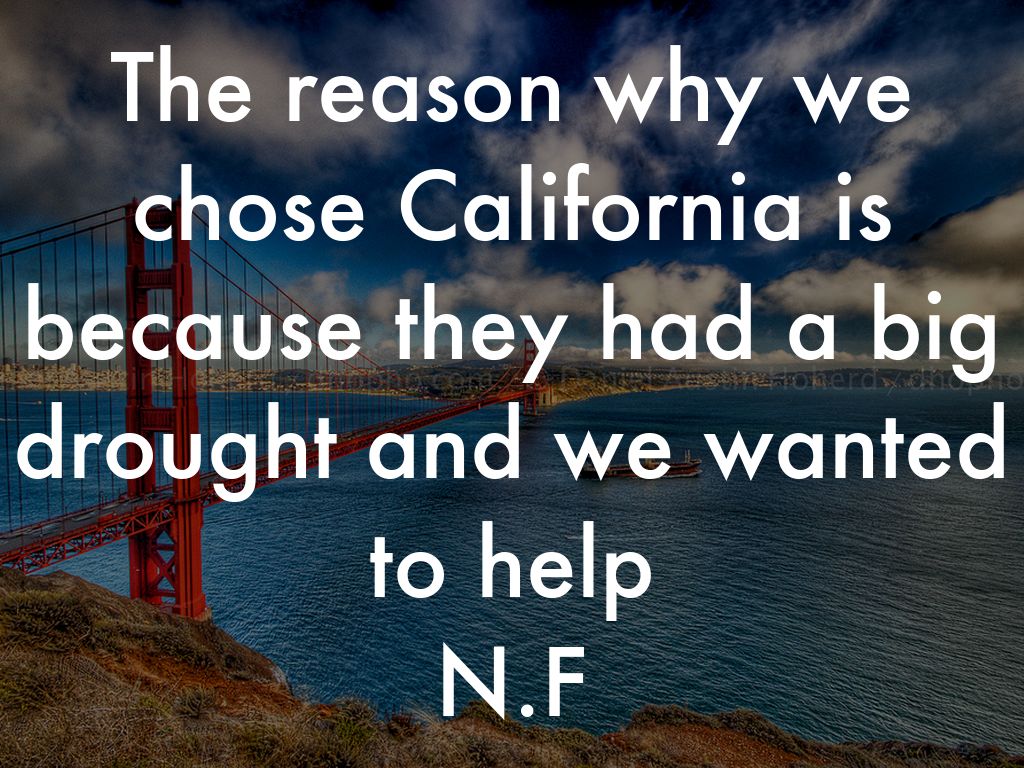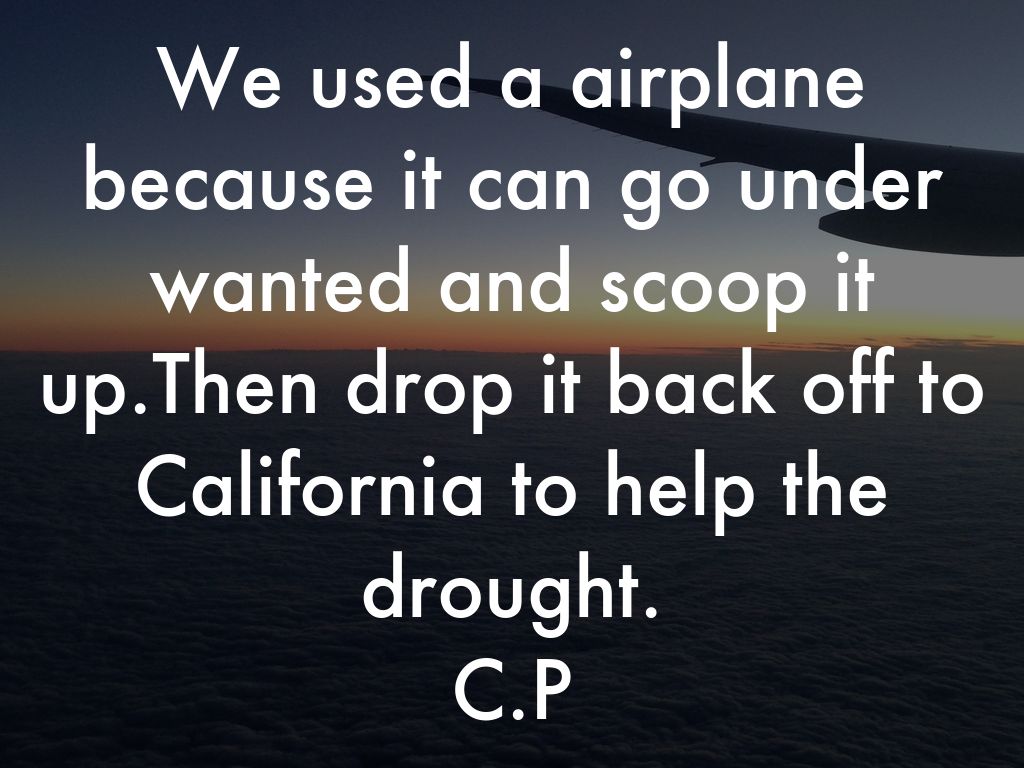 We used a airplane because it can go under wanted and scoop it up.Then drop it back off to California to help the drought.