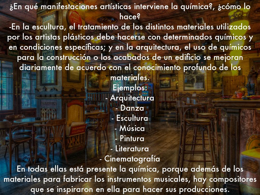 ¿En qué manifestaciones artísticas interviene la química?, ¿cómo lo hace?