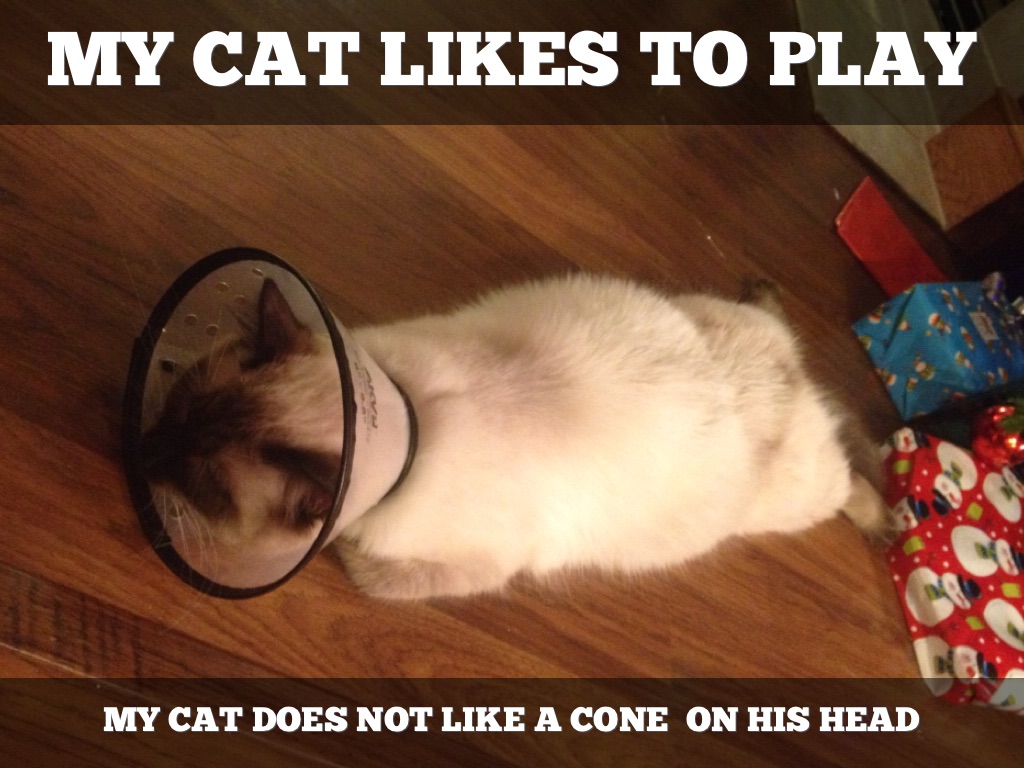 MY CAT DOES NOT LIKE A CONE ON HIS HEAD