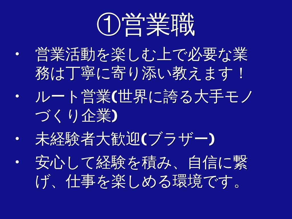 - 営業活動を楽しむ上で必要な業務は丁寧に寄り添い教えます!