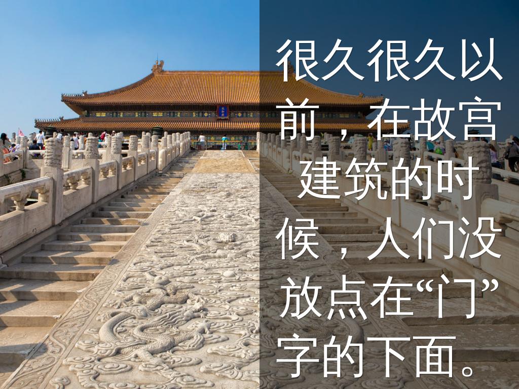 很久很久以前,在故宫建筑的时候,人们没放点在“门”字的下面。