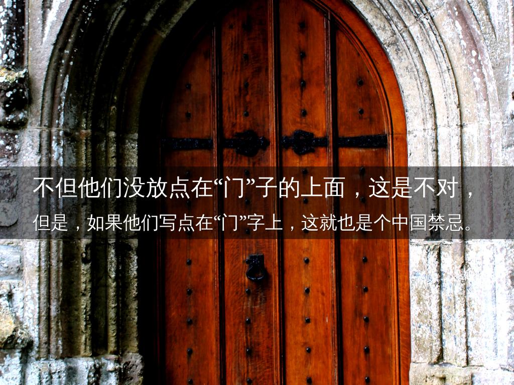 但是,如果他们写点在“门”字上,这就也是个中国禁忌。