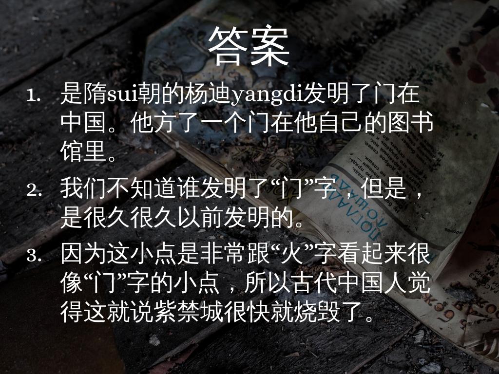 • 是隋sui朝的杨迪yangdi发明了门在中国。他方了一个门在他自己的图书馆里。