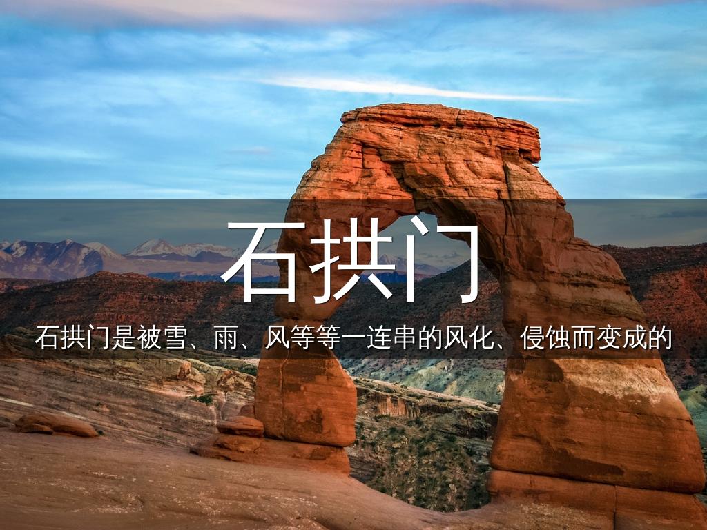 石拱门是被雪、雨、风等等一连串的风化、侵蚀而变成的
