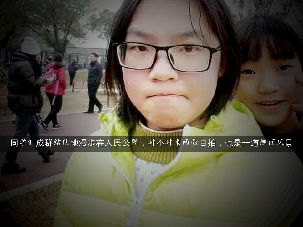 同学们成群结队地漫步在人民公园,时不时来两张自拍,也是一道靓丽风景