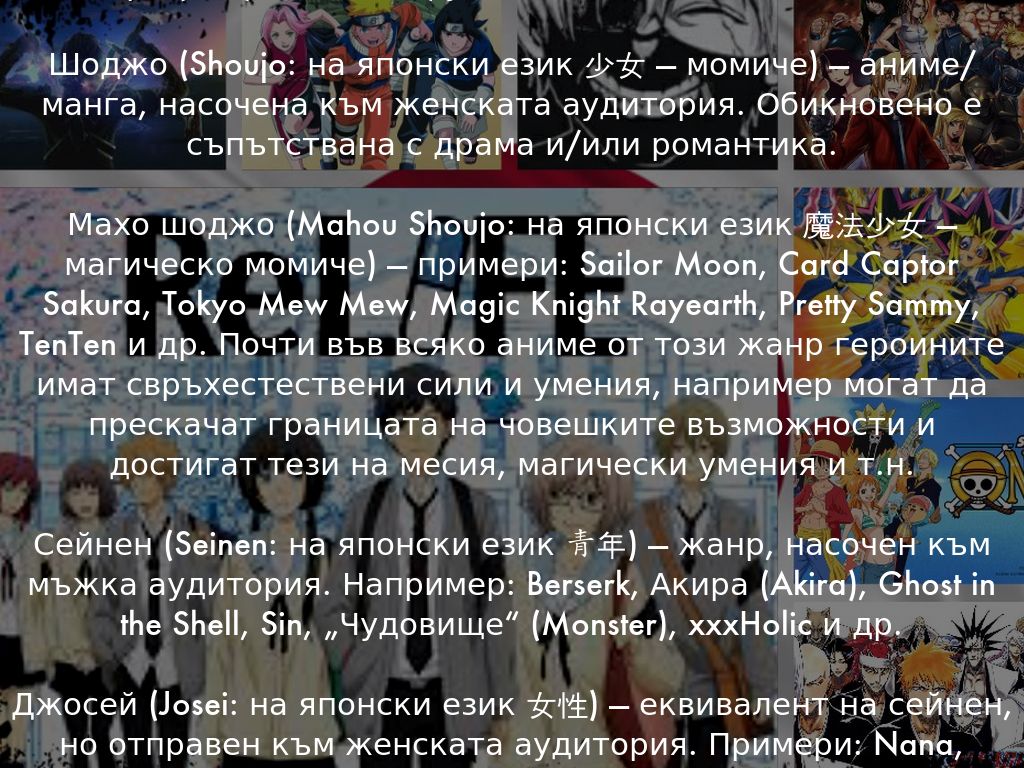 Аниме и манга жанрове[редактиране | редактиране на кода]