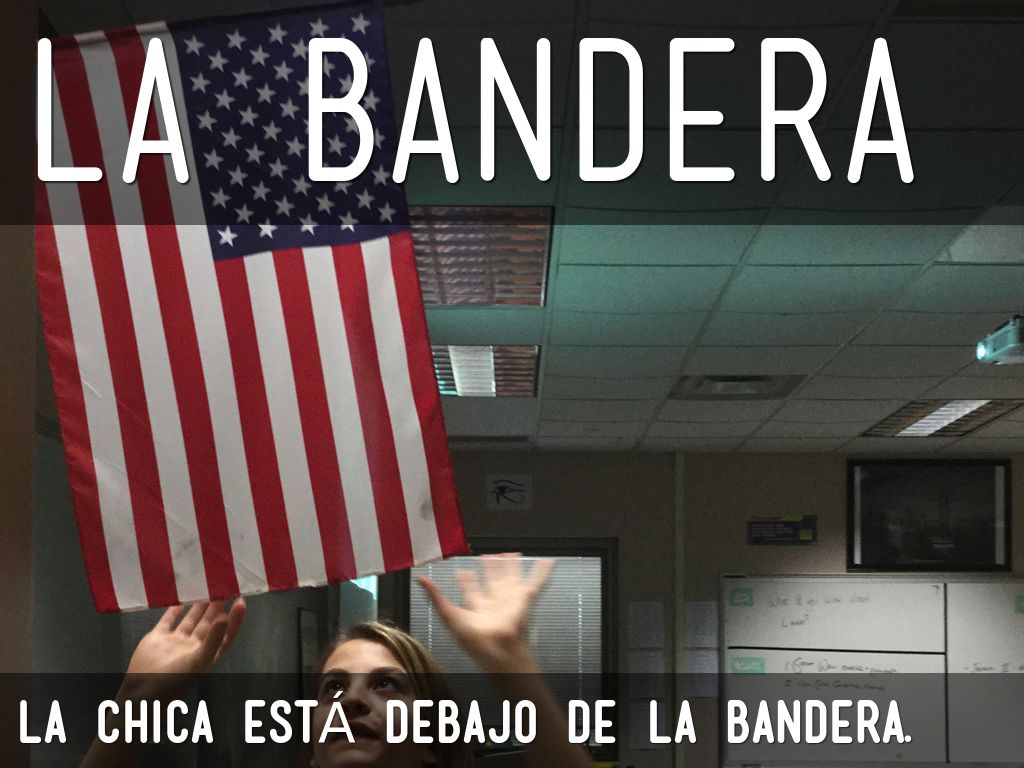 LA CHICA ESTÁ DEBAJO DE LA BANDERA.