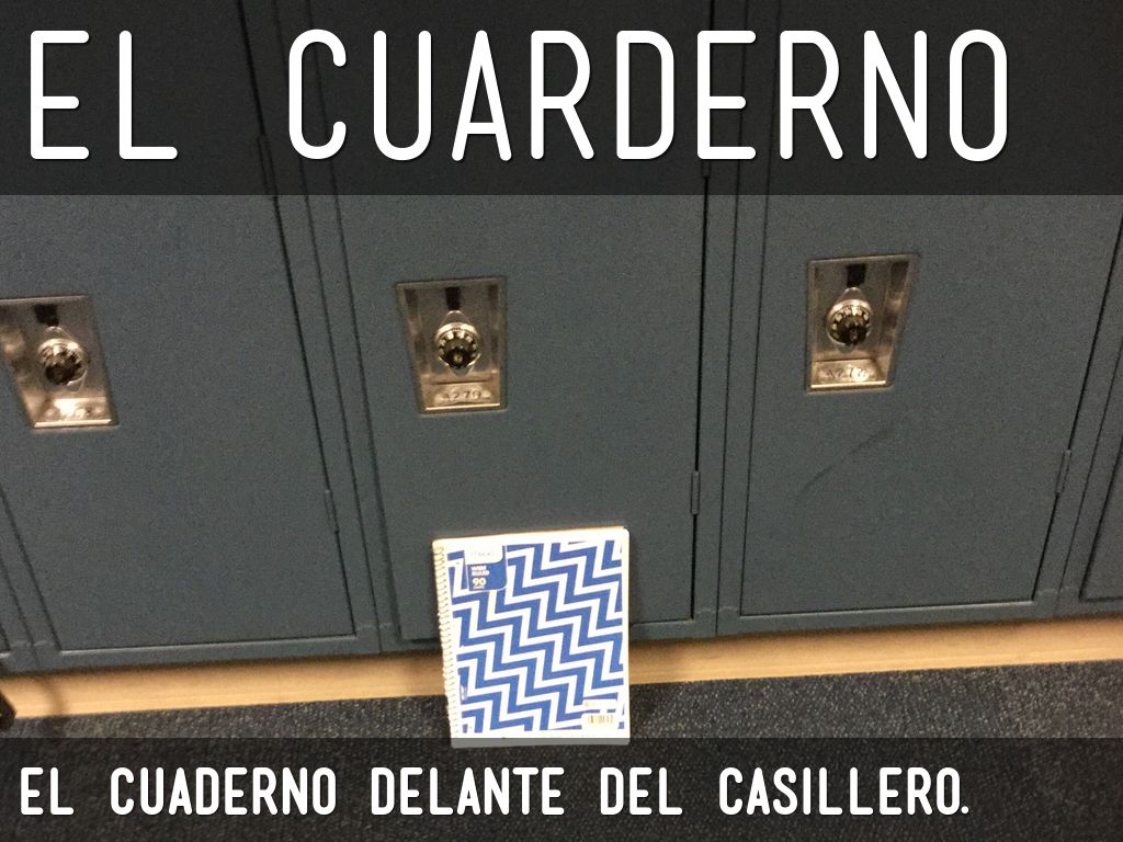 EL CUADERNO ESTÁ DELANTE DEL CASILLERO.