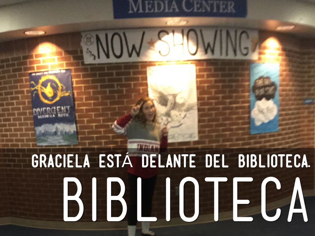 GRACIELA ESTÁ DELANTE DEL BIBLIOTECA.