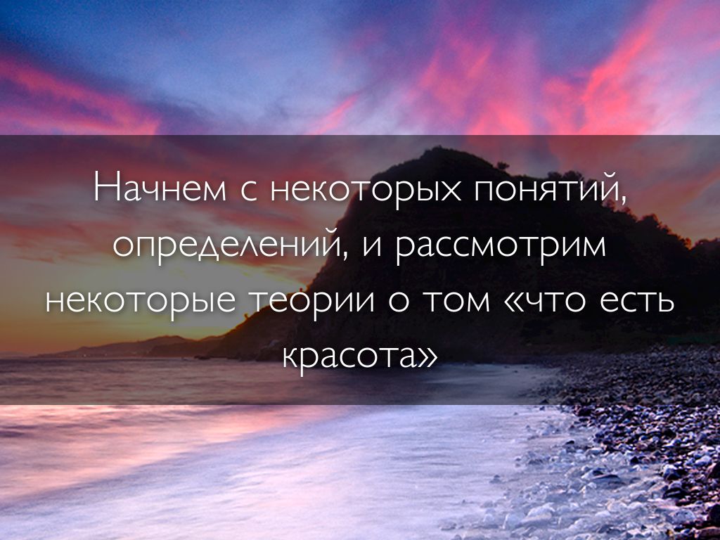 Начнем с некоторых понятий, определений, и рассмотрим некоторые теории о том «что есть красота»
