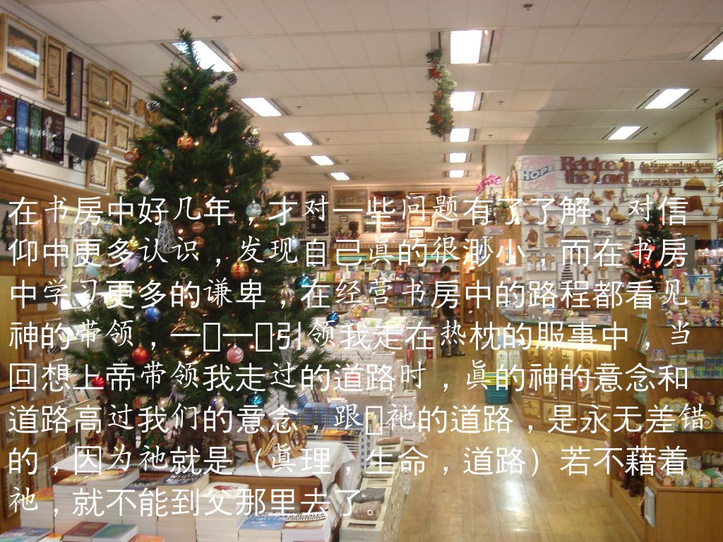 在书房中好几年,才对一些问题有了了解,对信仰中更多认识,发现自己真的很渺小,而在书房中学习更多的谦卑,在经营书房中的路程都看见神的带领,一歩一歩引领我走在热枕的服事中,当回想上帝带领我走过的道路时,真的神的意念和道路高过我们的意念,跟䢫衪的道路,是永无差错的,因为祂就是(真理,生命,道路)若不藉着祂,就不能到父那里去了。