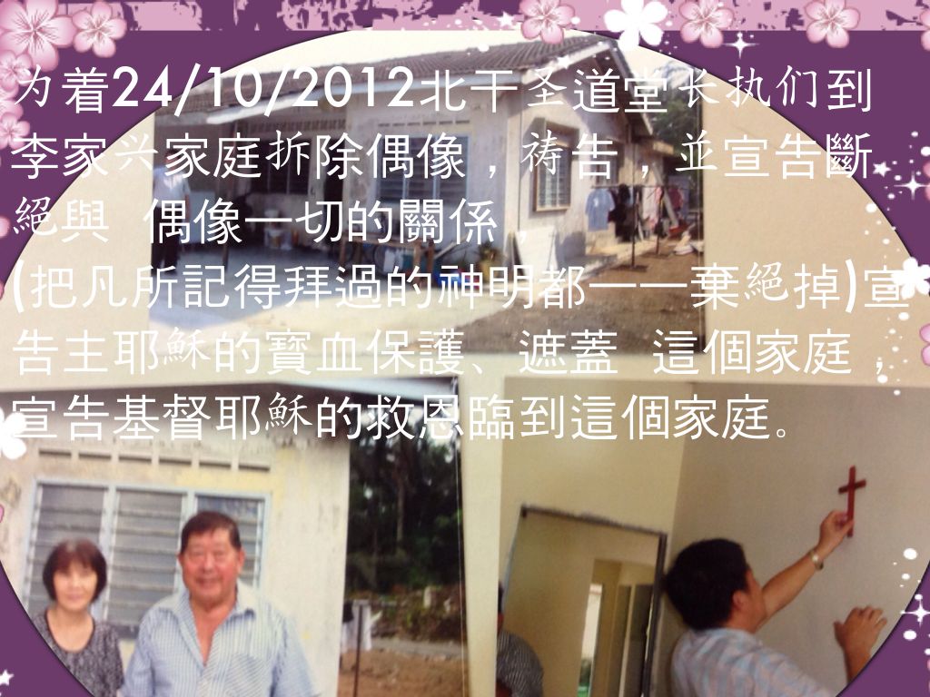 为着24/10/2012北干圣道堂长执们到李家兴家庭拆除偶像,祷告,並宣告斷絕與 偶像一切的關係,