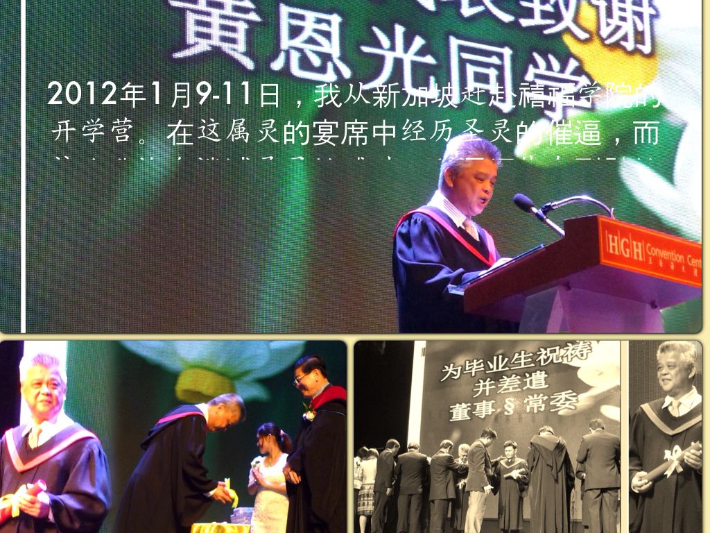 2012年1月9-11日,我从新加坡赶赴禧福学院的开学营。在这属灵的宴席中经历圣灵的催逼,而这次我沒有消滅圣灵的感动。我深切体会到神的同在,让我笃信唯有在神面前谦卑自己,預备自己给神使用。回想蒙召的经历給我体验到事奉,服事不能单恁信心,一定要有整全的装备。好让我所学习的实际地应用在传福音和服事基层的工场。