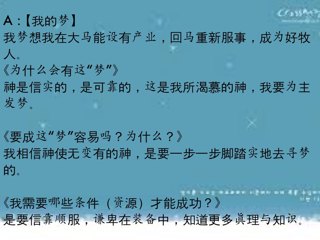 我梦想我在大马能设有产业,回马重新服事,成为好牧人。