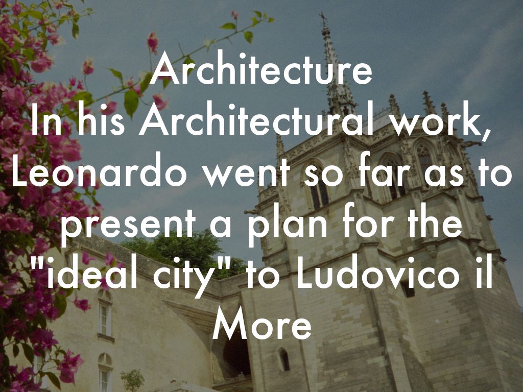 In his Architectural work, Leonardo went so far as to present a plan for the "ideal city" to Ludovico il More