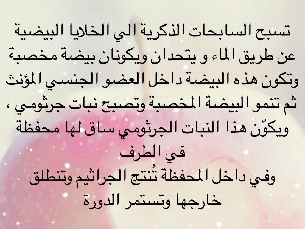 تسبح السابحات الذكرية الي الخلايا البيضية عن طريق الماء و يتحدان ويكونان بيضة مخصبة