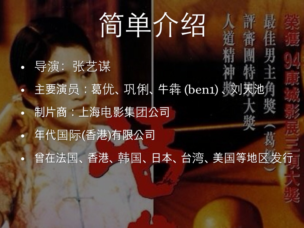 主要演员:葛优、巩俐、牛犇 (ben1) 、刘天池