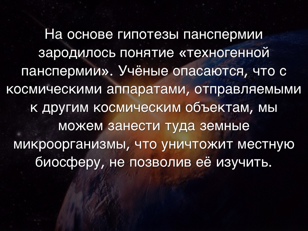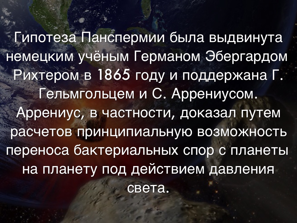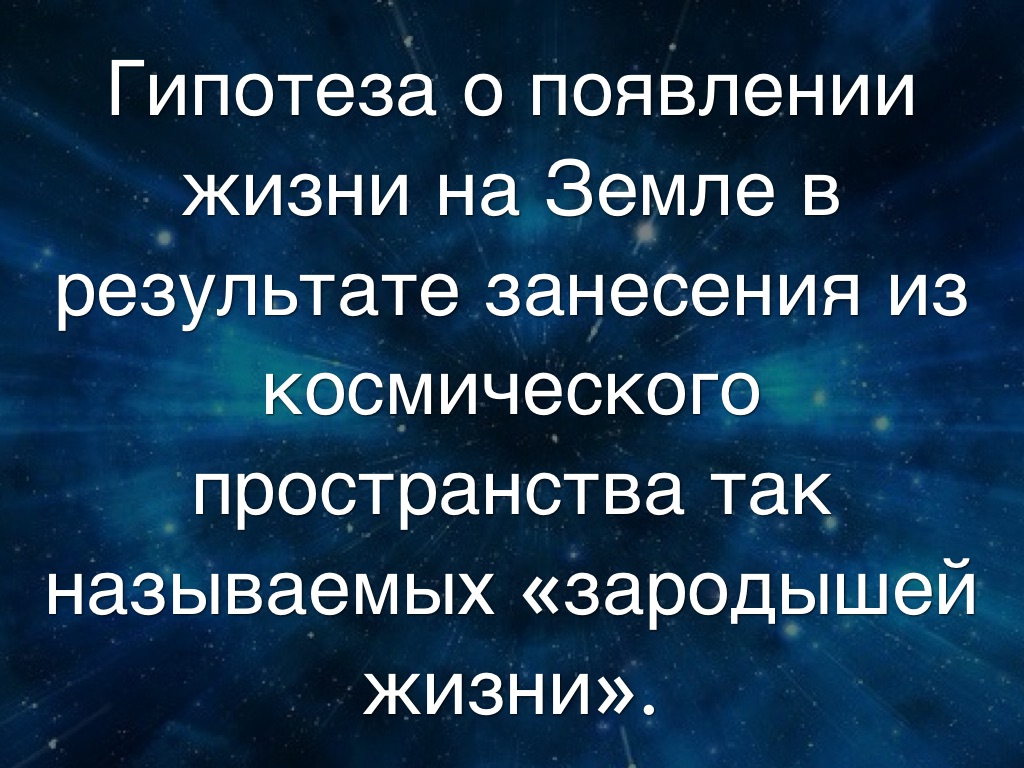 Гипотеза о появлении жизни на Земле в результате занесения из космического пространства так называемых «зародышей жизни».