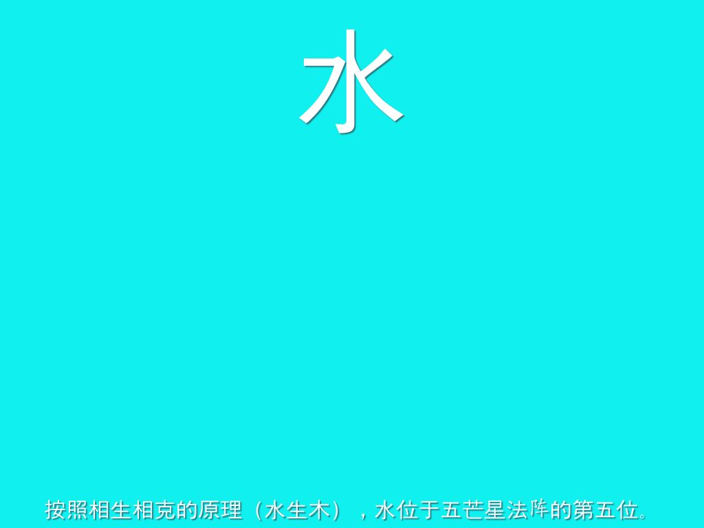 按照相生相克的原理(水生木),水位于五芒星法阵的第五位。